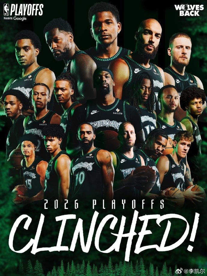 4月9日讯 李凯尔今天更新社媒,庆祝球队锁定西部第六。